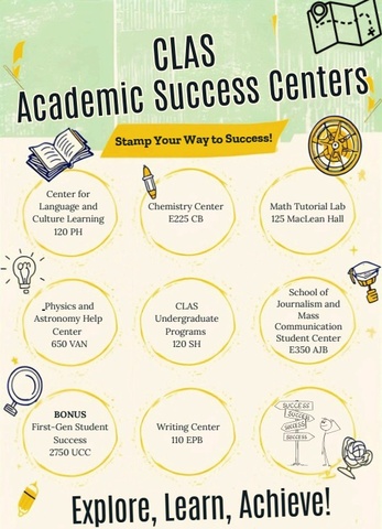 CLAS UP is hosting a Scavenger Hunt 🕵️♂️ this week to help you discover the variety of CLAS Academic Success Centers that are here to help you thrive, not just survive, your courses. During their regular business hours, each location has a stamp or sticker waiting for you to add to your passport (link below).