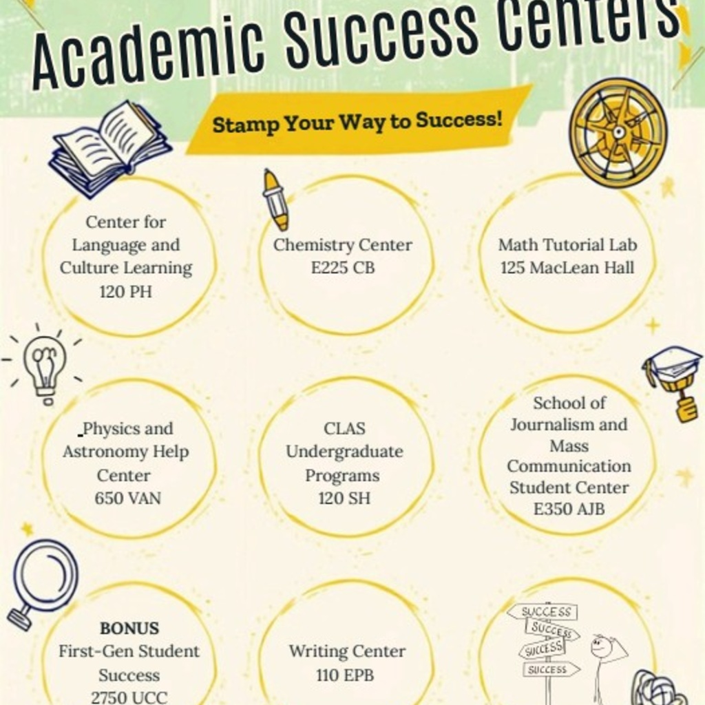 Participating CLAS Academic Support Centers are the Center for Language and Culture Learning (CLCL), the Chemistry Center, the Math Tutorial Lab, the Physics and Astronomy Help Center, the School of Journalism and Mass Communication Student Center, and the Writing Center.