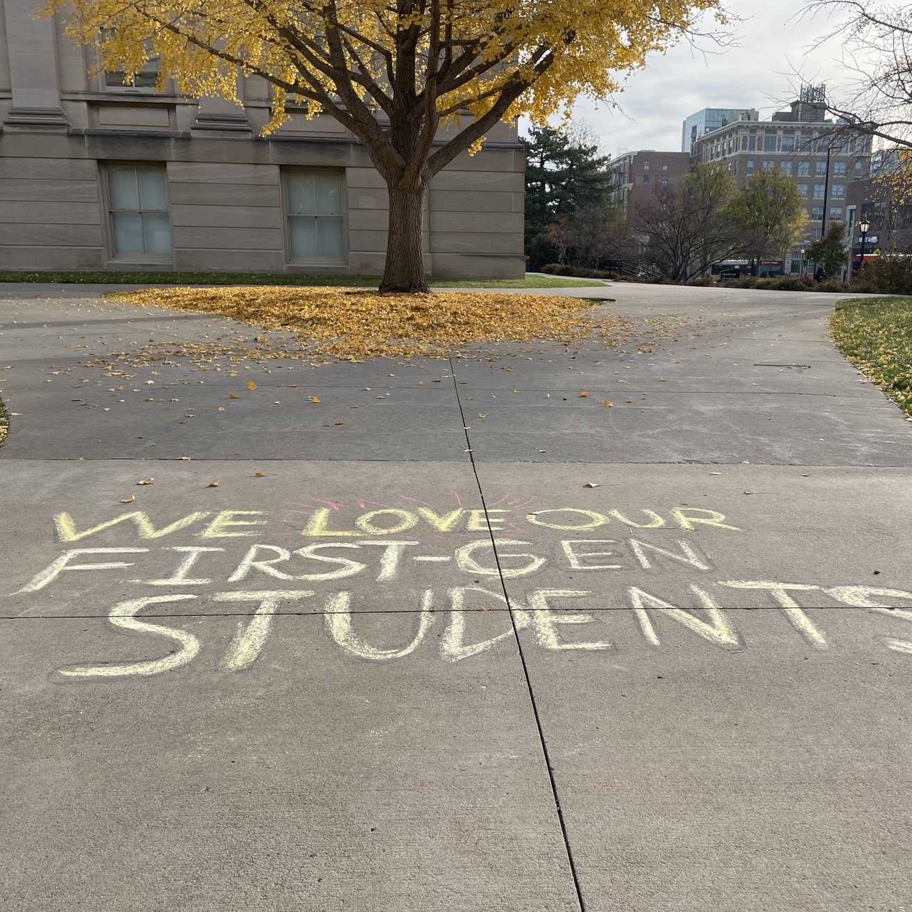We're celebrating National First-Generation College Celebration week festivities by unleashing our creativity. Be on the lookout around the Pentacrest area for words of encouragement and celebration written for first-gen students, by first-gen students (members of our 1stGen@Iowa Student Advisory Board).